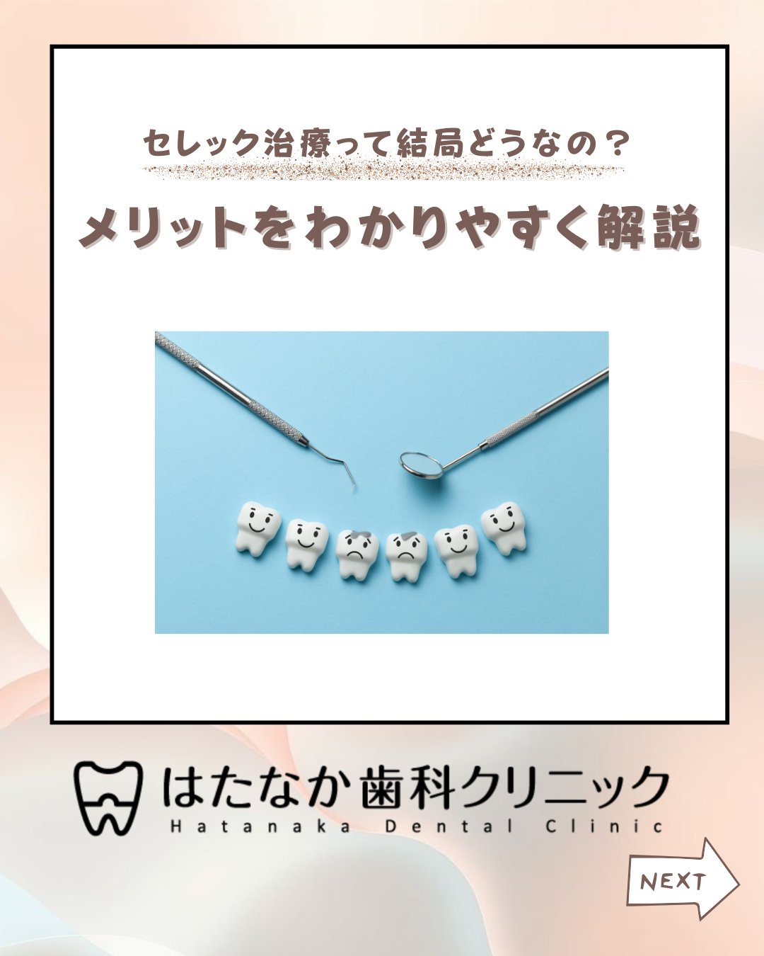 歯にまつわる豆知識を発信! 今回は「歯の神経を取ることによる影響」についてまとめました🦷  歯の神経には、 ・痛みや温度を感じる ・栄養を運び歯を守る 大切な役割があります。 しかし、むし歯が進行してしまうと 神経を取らざるを得ないこともあります。 神経を取った歯は… ① 歯が割れやすくなる 栄養が届きにくくなり、徐々にもろくなるため 欠けたり割れたりするリスクが高まります。 ② トラブルを見逃しやすい しみたり痛みを感じにくくなるため、 気づかないうちにむし歯が進むことも…。 ③ 細菌感染の可能性 治療後でも根に細菌が入ると炎症・痛みが出ることがあります。 定期的なチェックがとても大切です。 ④ 大切なのは予防とメンテナンス 正しいブラッシング・フロス習慣、 定期検診、生活習慣の工夫で歯を守りましょう✨ 歯をできるだけ長く守るために、 日々のケアと早めの受診を心がけましょう🦷✨ #歯の神経 #根管治療 #歯髄炎 #虫歯治療 #歯科豆知識 #歯の健康 #予防歯科 #はたなか歯科クリニック #歯医者さんに聞いてみた #デンタルケア #歯を守る #歯科検診 #口腔ケア #歯のトラブル #歯が割れた #歯の痛み #歯科衛生士さんと繋がりたい #歯医者選び