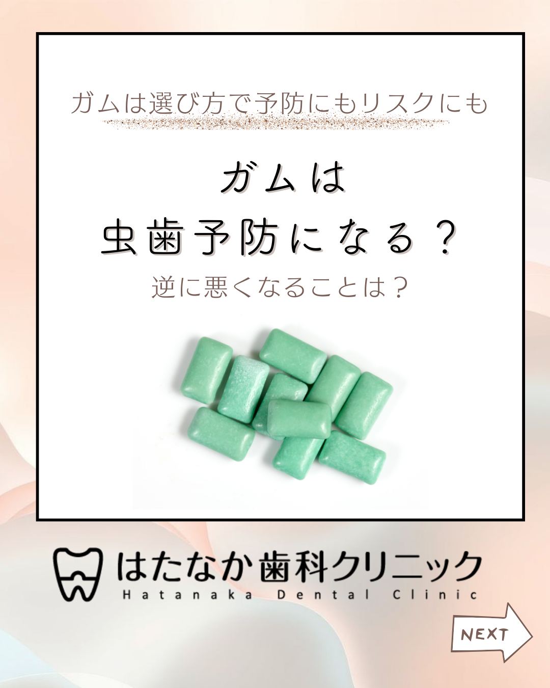🦷【ガムで虫歯予防できる?】 「ガム=虫歯予防に良い」というイメージ、実は選び方と使い方がとても大切です。 ✔ 虫歯予防になるのは 👉 キシリトール100%ガム(砂糖ゼロ) ✔ 逆に注意が必要なのは 👉 砂糖入りガム 👉 酸っぱい味・フルーツ味 👉 長時間ずっと噛み続けること ガムは歯みがきの代わりにはなりませんが、 ・外食後すぐ歯みがきができないとき ・唾液が少ない方 には、とても有効なケア方法です✨ 「自分に合った予防方法が知りたい」 「虫歯をくり返したくない」 そんな方は、お気軽にご相談ください😊 ━━━━━━━━━━━━━━ 📍 はたなか歯科クリニック 🏠 東京都墨田区墨田4-1-2 📞 TEL:03-3610-8241 🌐 https://htnk-dc.com/ ━━━━━━━━━━━━━━ 次回の検診・クリーニングのご予約も お電話またはHPより受付中です🪥✨ #はたなか歯科クリニック #墨田区歯医者 #虫歯予防 #キシリトールガム #予防歯科