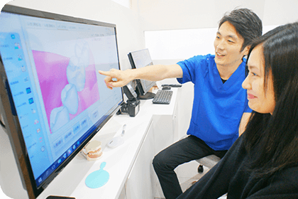 インプラントの相談では、CT撮影を行ったうえで、可能な治療法や大まかな治療期間、費用についてお話していますので、お気軽にご相談ください。