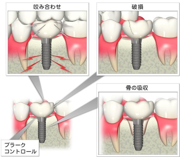 〈インプラントの破損・ゆるみ、被せものの破折〉