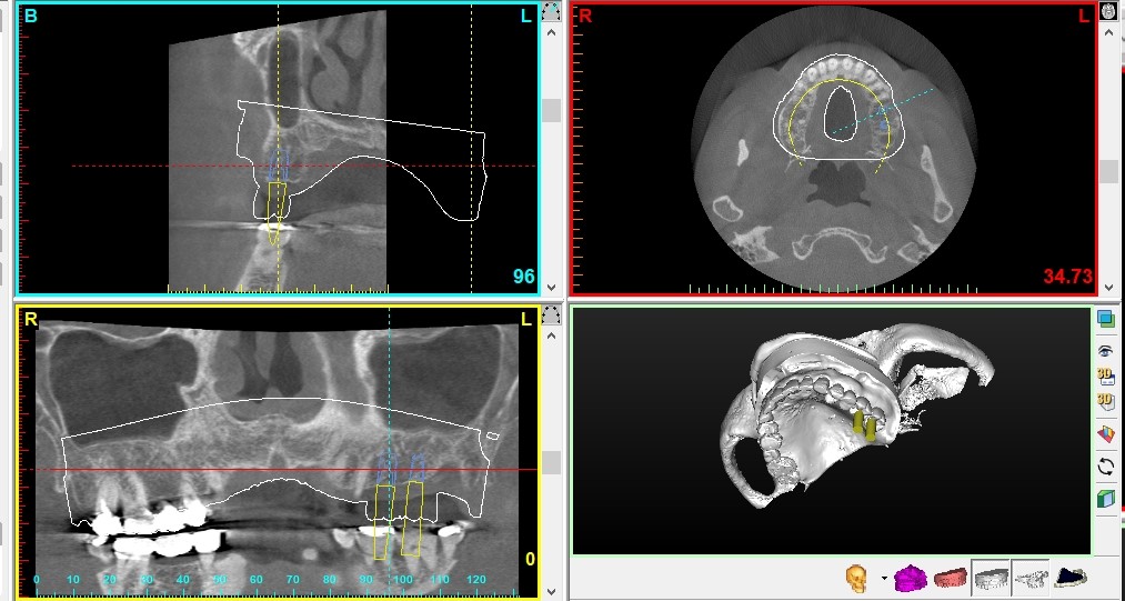 術前検査では、歯科用CT・3Dシミュレーション(Simplant)・サージカルステントです。